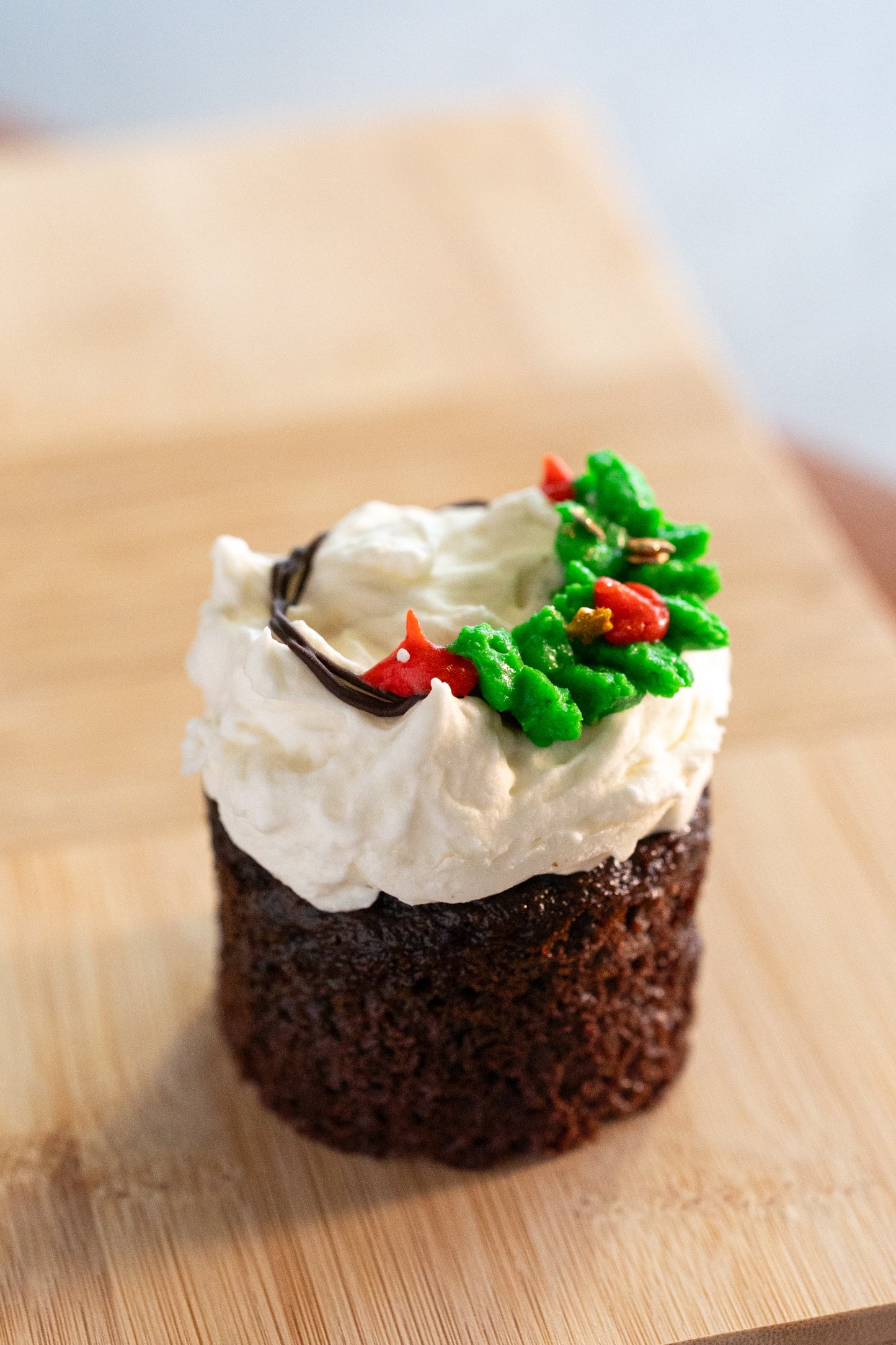 Detail: Indulge in the festive spirit with our Peppermint Chocolate Cupcake, a delightful blend of rich, velvety chocolate layers infused with a hint of refreshing peppermint. Each cupcake is generously slathered with creamy peppermint frosting and ganache, creating a harmonious balance between the deep cocoa notes and the uplifting minty freshness. This cake not only dazzles the taste buds but also adds a touch of holiday cheer to your table. Perfect for Christmas gatherings, it promises to be a show-stopping centrepiece and a crowd-pleaser for all ages.